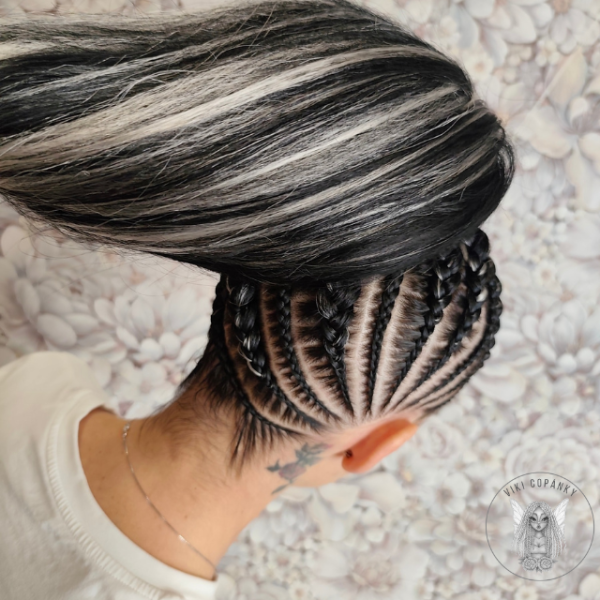 - **Cornrows**: Vlasové prameny jsou těsně vztyčeny k pokožce hlavy a upleteny velmi úzkými copánky, buď rovnými, nebo do různých ornamentů a vzorů. Cornrows mají nejen estetický, ale také hluboký kulturní a rituální význam.